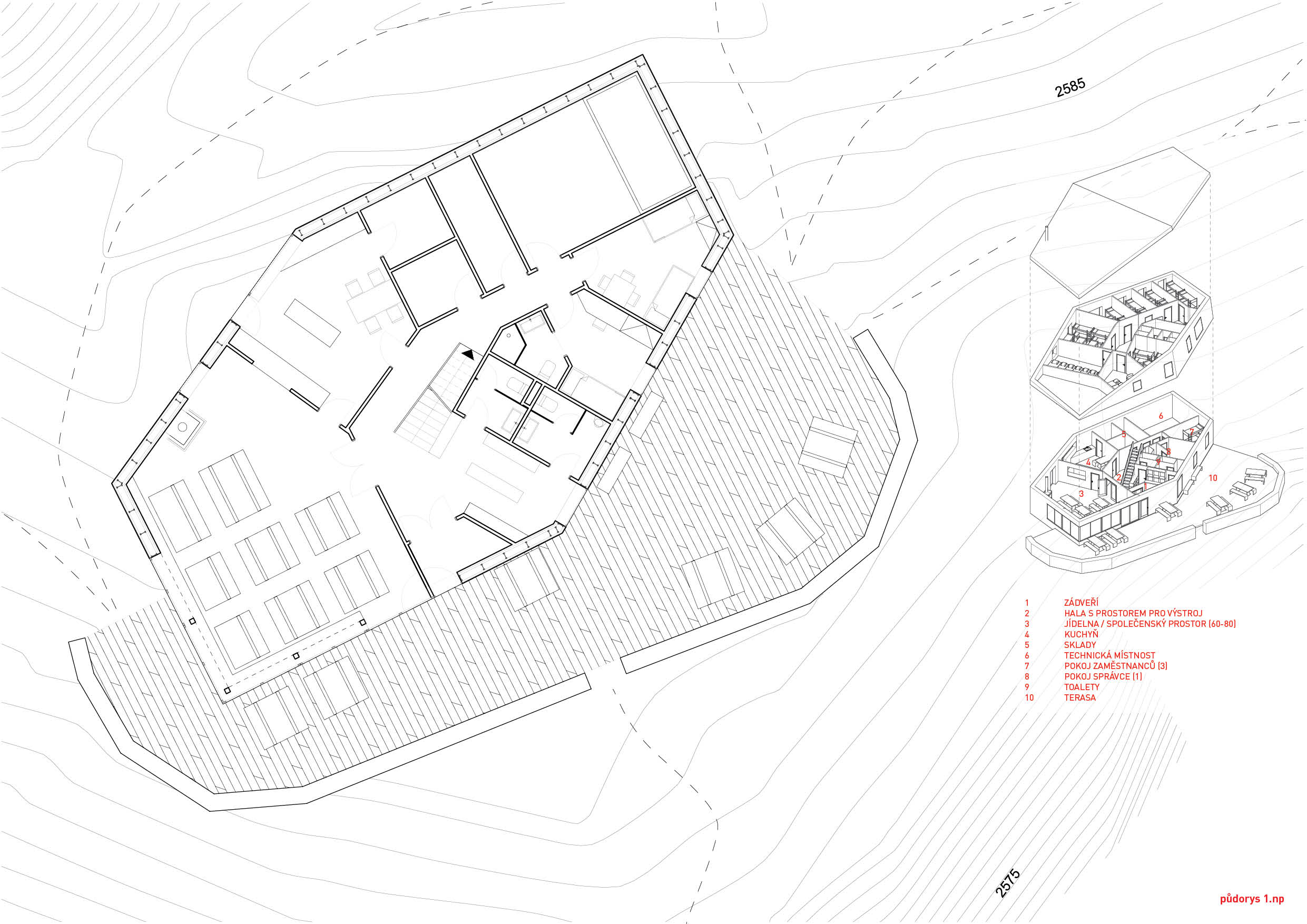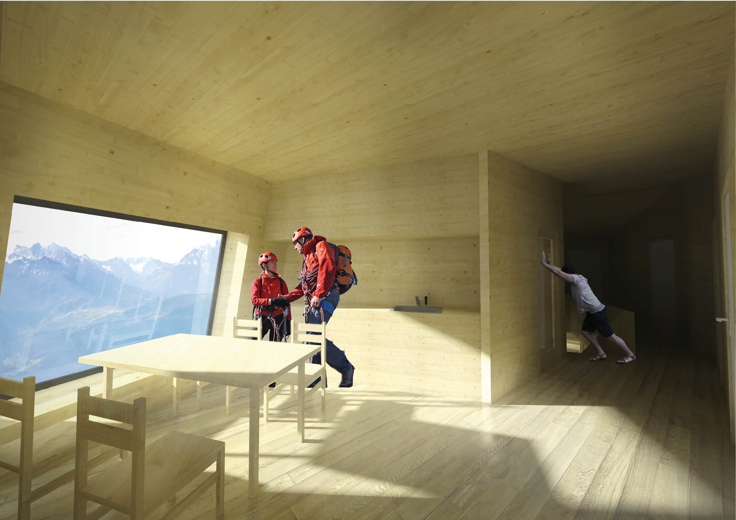 Útulna ve švýcarských Alpách již nevyhovuje svým požadavkům. Nové zadání si žádá dvakrát zvětšit pobytovou plochu. K tomu naše zadání dotváříme vyhořením kamenné útulny.