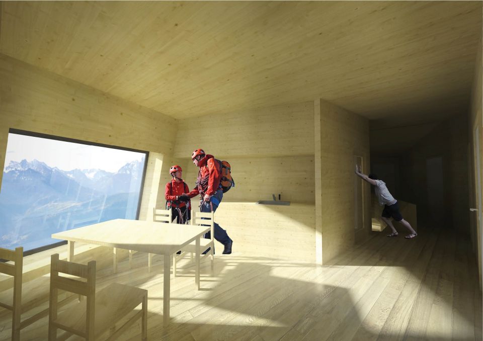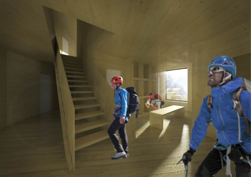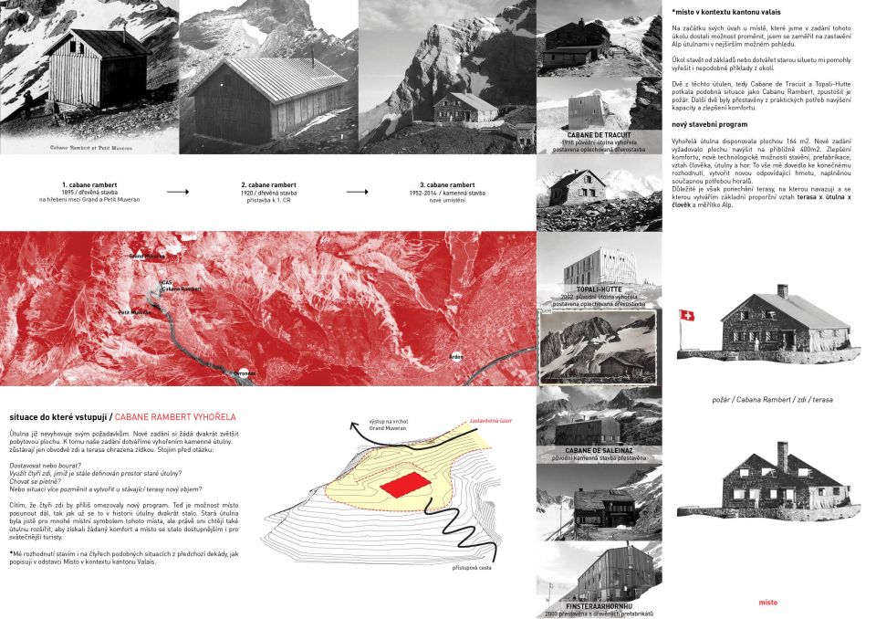 Útulna ve švýcarských Alpách již nevyhovuje svým požadavkům. Nové zadání si žádá dvakrát zvětšit pobytovou plochu. K tomu naše zadání dotváříme vyhořením kamenné útulny.